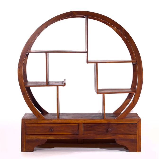 Rak berbentuk bundar dengan nakas 2 laci pada bagian bawah terbuat dari kayu jati.
